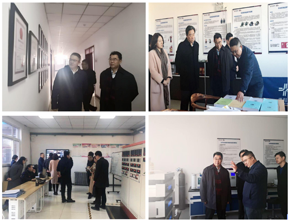 魏大鵬副主席一行先后到生產車間、生產控制室、文化長廊、安全實訓室、檢驗室進行了視察參觀,宋金鏈總經理對公司生產過程、產品及技術研發進行了相關講解和介紹。