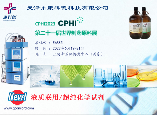 2023CPHI(第二十一屆世界制藥原料中國展),將于6月19日-21日在上海新國際博覽中心舉辦。天津市康科德科技有限公司秉承“值得信賴的高純色譜試劑制造商”的品牌定位,攜超純色譜級(UHPLC)試劑、液質聯用級(LC-MS)試劑、無水試劑以及梯度級試劑等產品亮相展會現場,為客戶呈現更高性價比色譜試劑解決方案,歡迎屆時光臨展位,期待與您面對面交流!