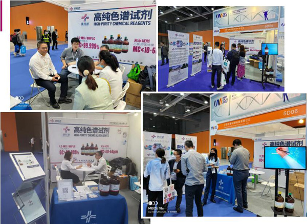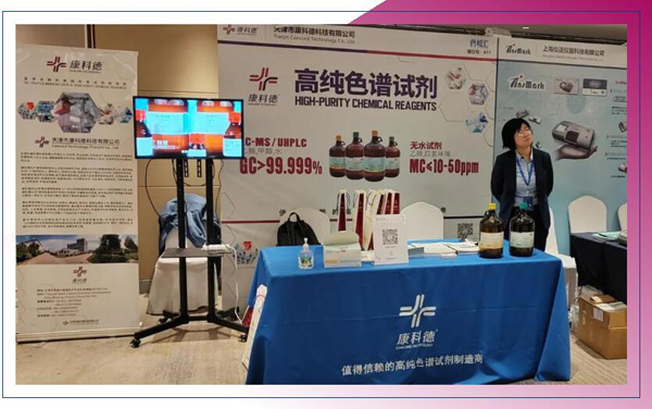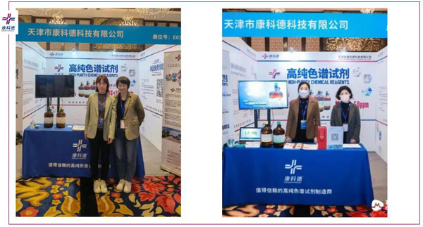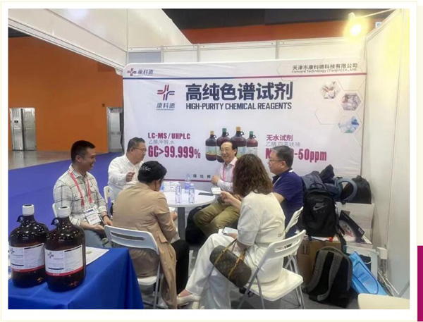 康科德團隊由營銷總監杜文玲和技術總監劉巖帶隊,將康科德高純色譜試劑產品帶到現場進行交流探討。